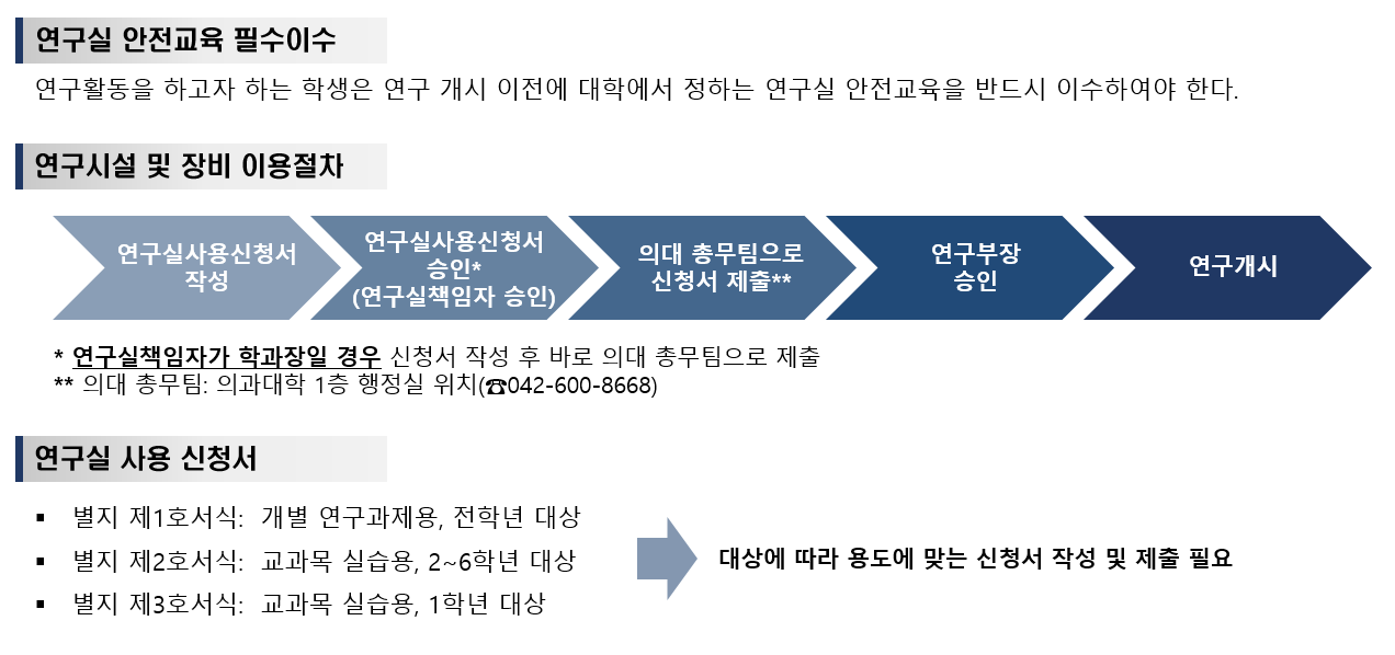 <첨부파일> 1. 의과대학 학생연구활동 지침 2. 의과대학 학생연구활동 지침_주요내용 3. 연구실 사용신청서 서식 |