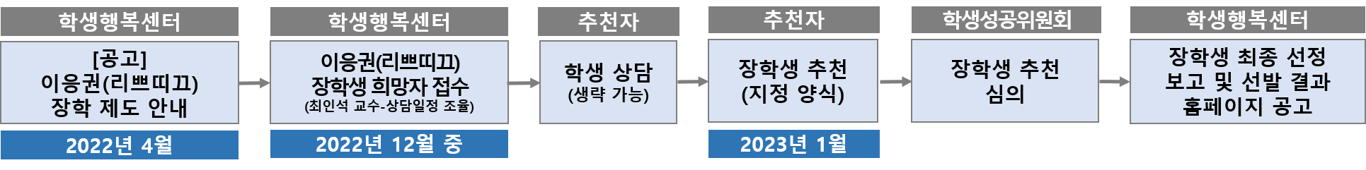 의과대학 지정발전기금으로 조성된 「이응권(리쁘띠끄) 외과 장학금」 장학생으로 지원하고자 하는 학생은 아래 안내를 참고하여 지원할 수 있도록 바랍니다.