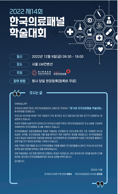 | 제목 | [한국보건사회연구원/국민건강보험] 2022 제14회 한국의료패널 학술대회 안내 | ||||