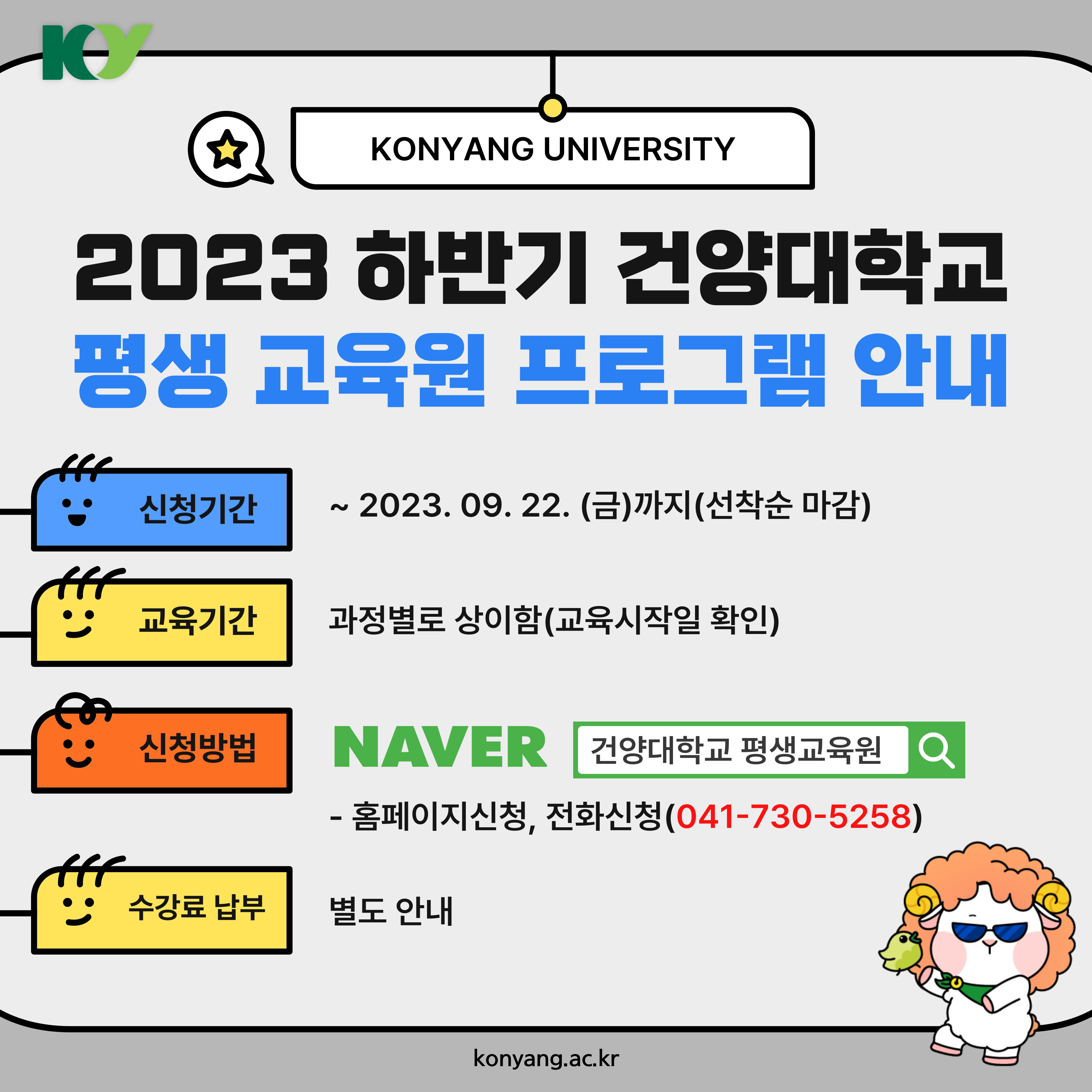 | 제목 | 2023 하반기(가을학기) 건양대학교 평생교육원 프로그램 안내 | ||||