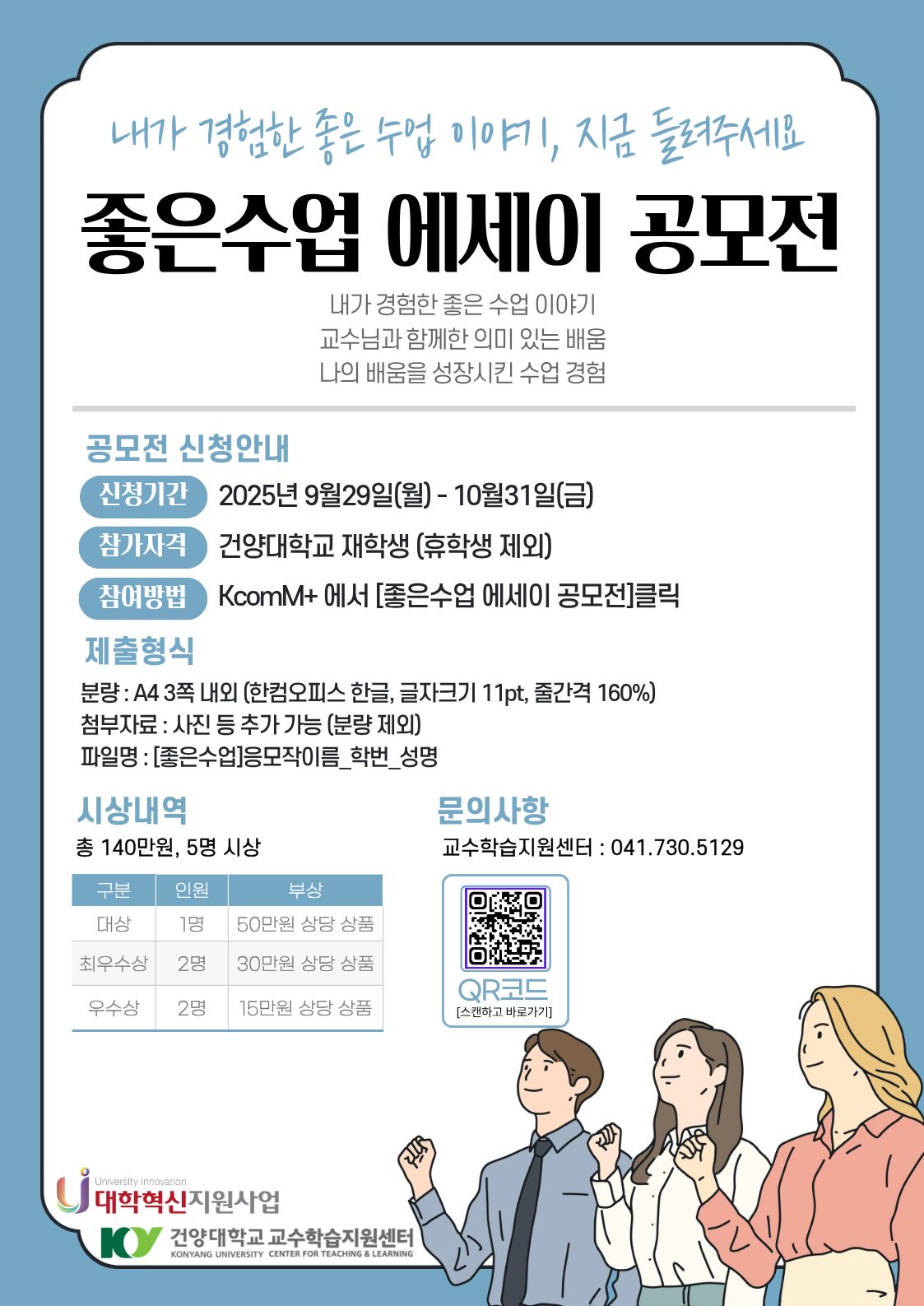 우리 대학 교수학습지원센터에서는 아래와 같이 재학생을 대상으로 하는 공모전을 진행하고 있습니다.