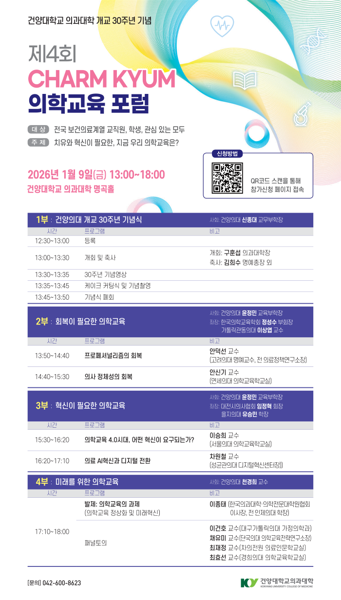 | 제목 | 건양의대 개교 30주년 기념, 참키움 의학교육 포럼 개최 안내 | ||||