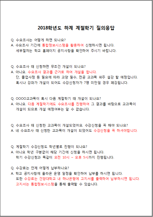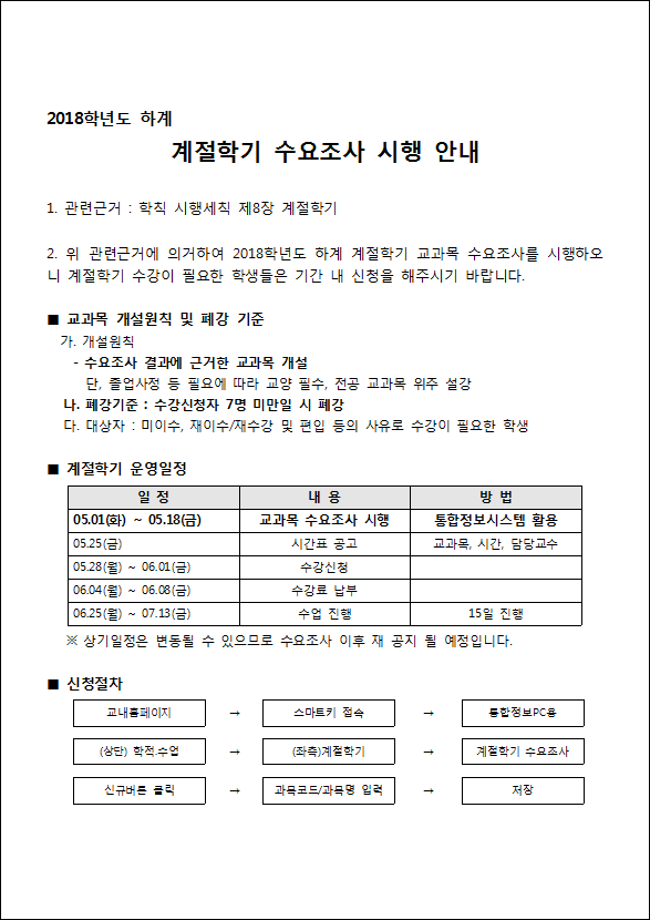 제목 | 2018학년도 하계 계절학기 수요조사 시행 안내 및 질의응답 | ||||