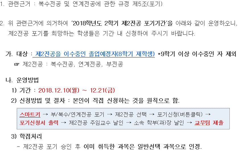 제목 | 2018학년도 2학기 제2전공 포기기간 안내 | ||||
