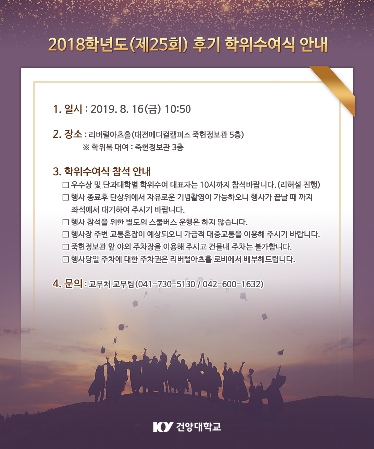 제목 | 2018학년도(제25회) 후기 학위수여식 안내 | ||||