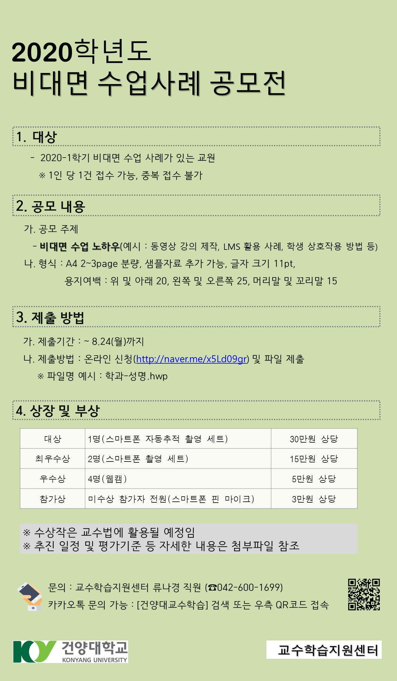 제목 | [교원 대상] 2020-1학기 비대면 수업사례 공모전 안내 | ||||