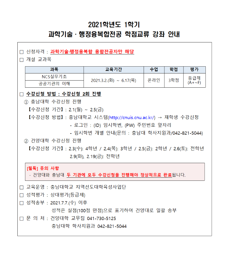 제목 | [과학기술·행정융복합 융합전공] 학점교류 강좌 안내 | ||||