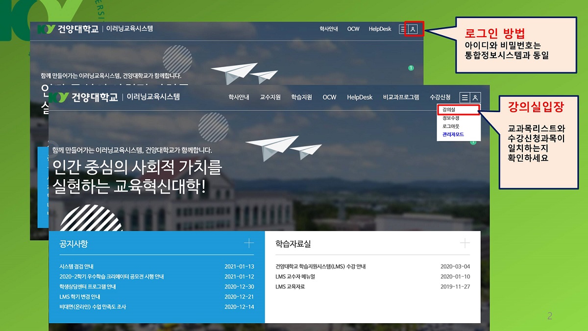 제목 | 2021학년도 1학기 LMS(이러닝시스템) 사용 방법 안내 | ||||