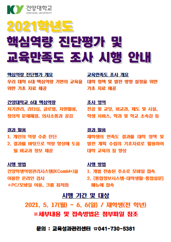 제목 | 2021학년도 핵심역량 진단평가 및 교육만족도 조사 시행 | ||||