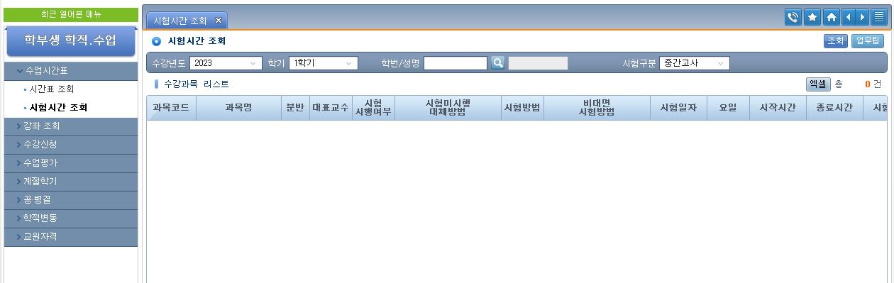 2023학년도 1학기 중간고사 시험시간 조회