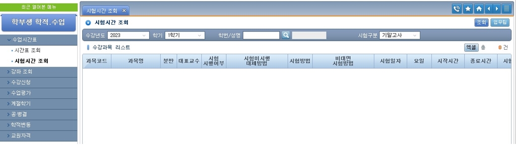 2023-1학기 기말고사 시험시간 조회방법 안내