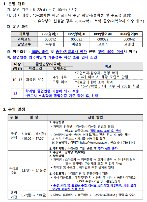 제목 | 2020학년도 하계방학 KPP(영어) 외국어 교육 안내 | ||||