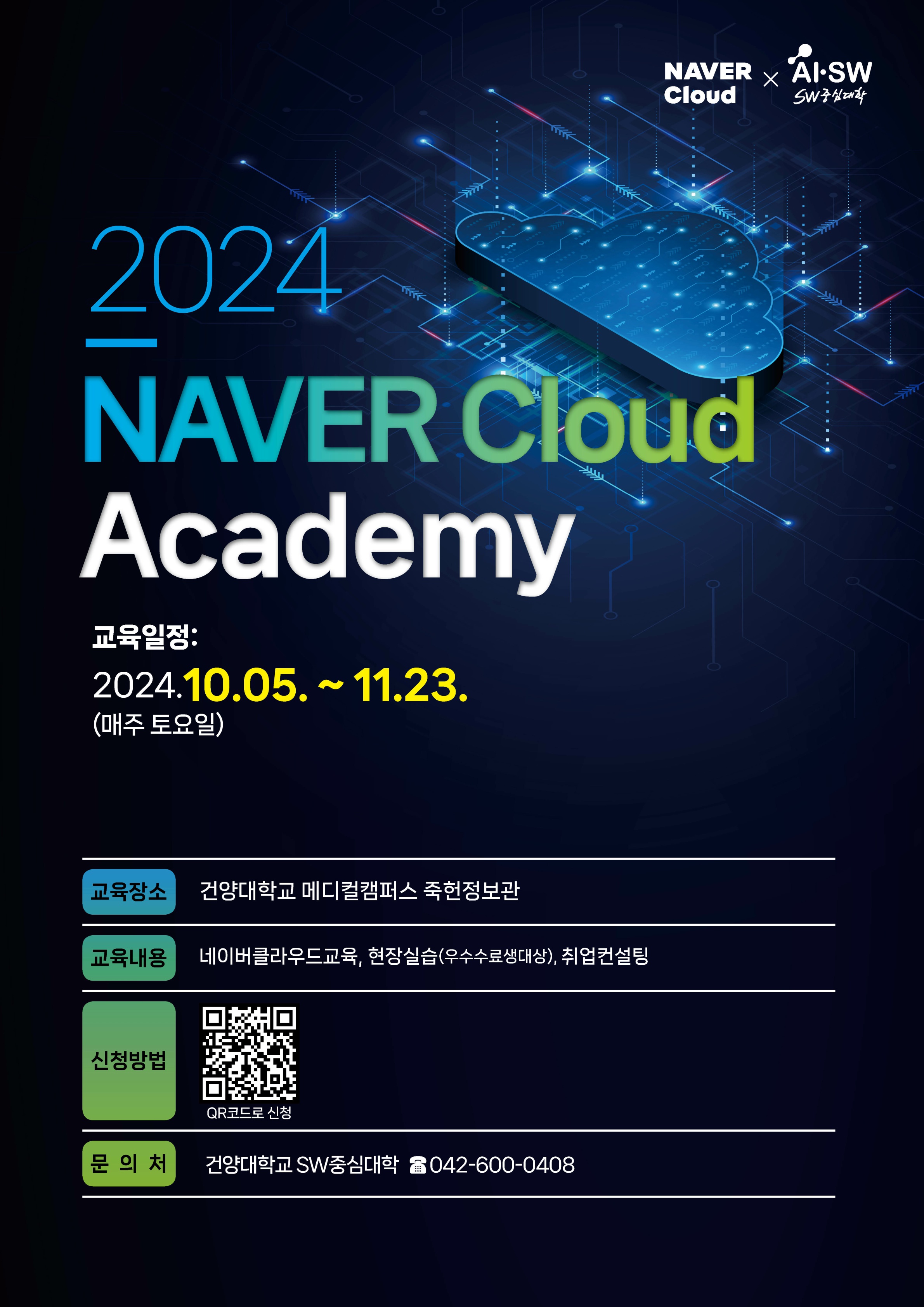 『 네이버클라우드아카데미 교육생 모집 안내 』글의 상세내용을 확인하는 표로 제목, 부서명, 등록일, 조회, 첨부, 내용으로 나뉘어 설명합니다.